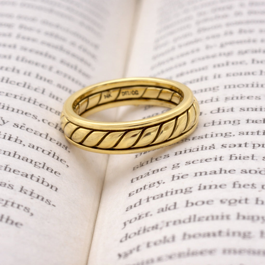 Highly sought after designer, Scott Kay, brings you this hefty 5.7mm 12.9 gram 19Karat Yellow Gold Twist Wedding Band Size 10.