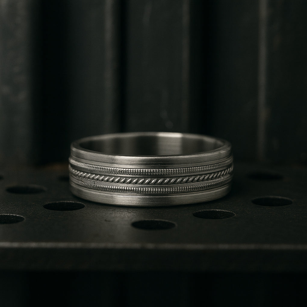 Men's 14 Karat White Gold Milgrain band