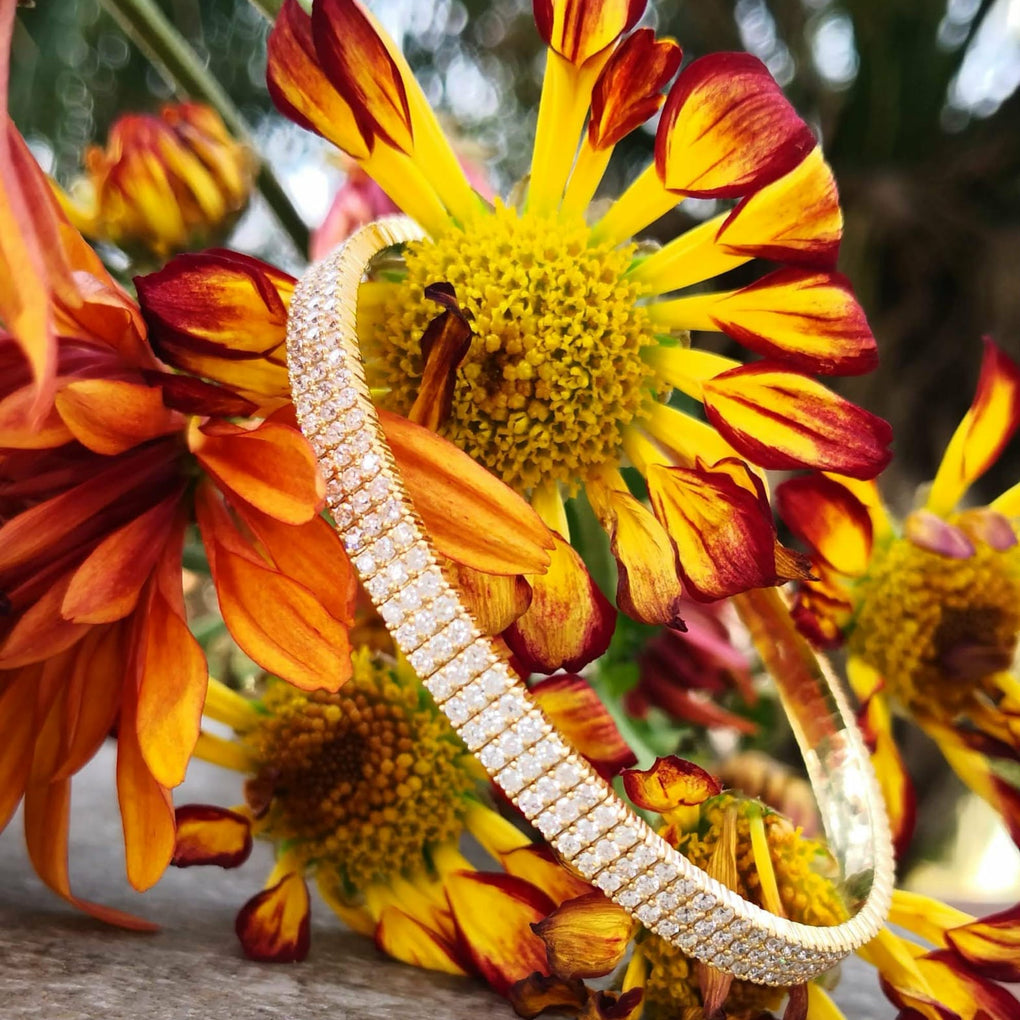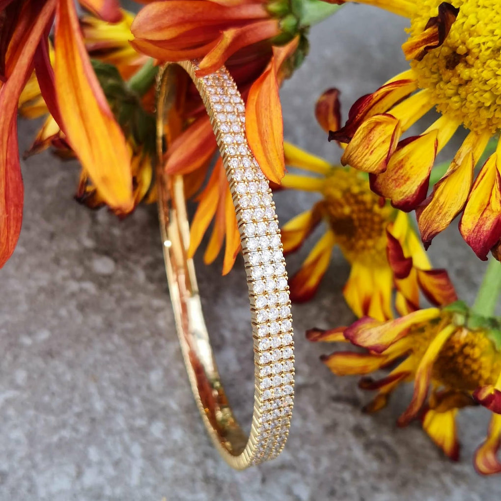 14K Yellow gold 3.5ctw Diamond three row flex bangle