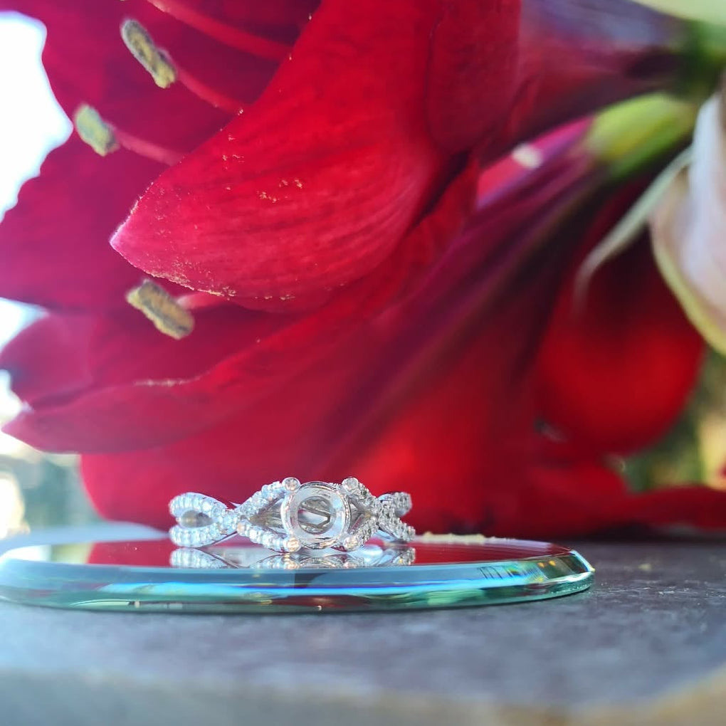 This beautiful cross over semi mount will add the perfect sparkle to your diamond OR let us help you pick one today. The ring will hold a .75ct round diamond