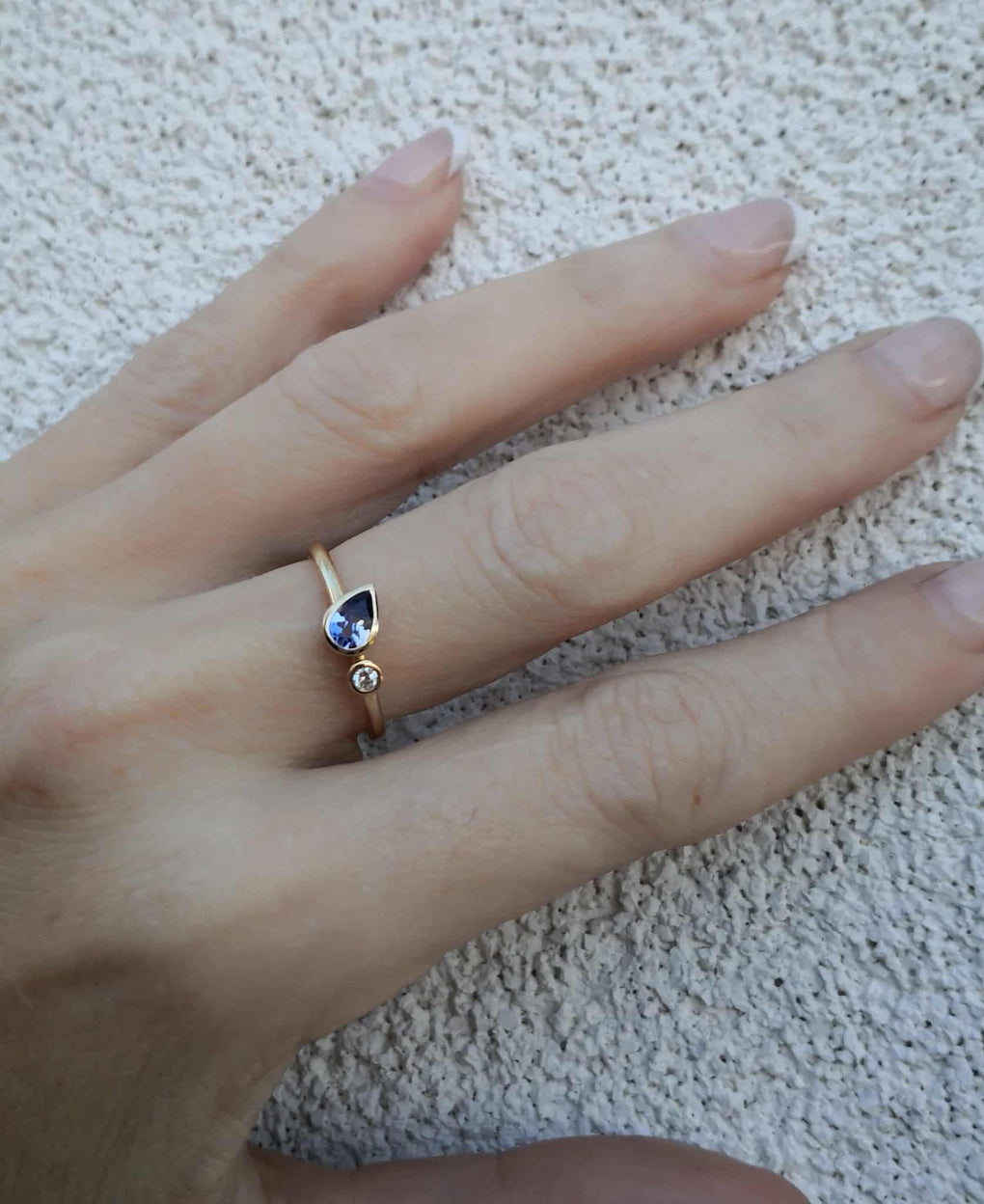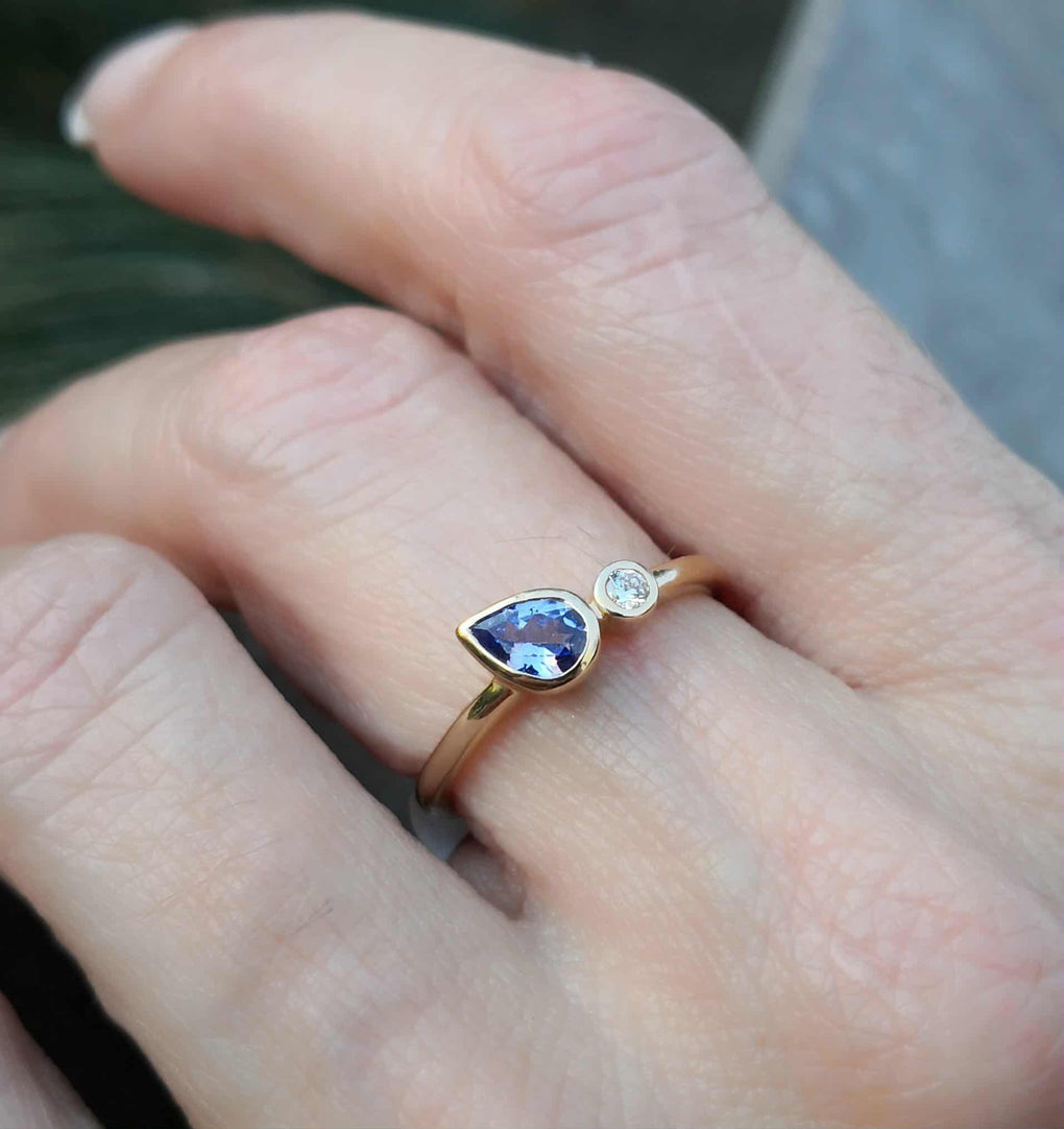 14K Yellow Gold Tanzanite and diamond Bezel Ring