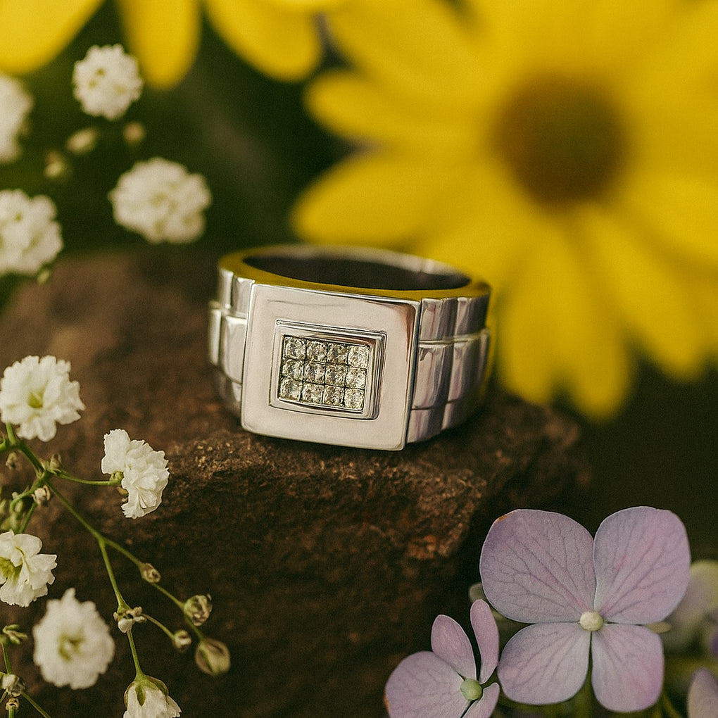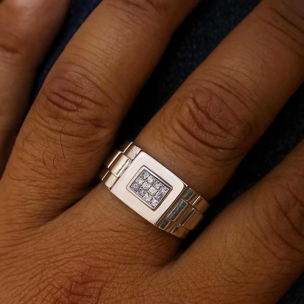 Men's 14kt white gold "Rolex" style princess cut diamond ring.