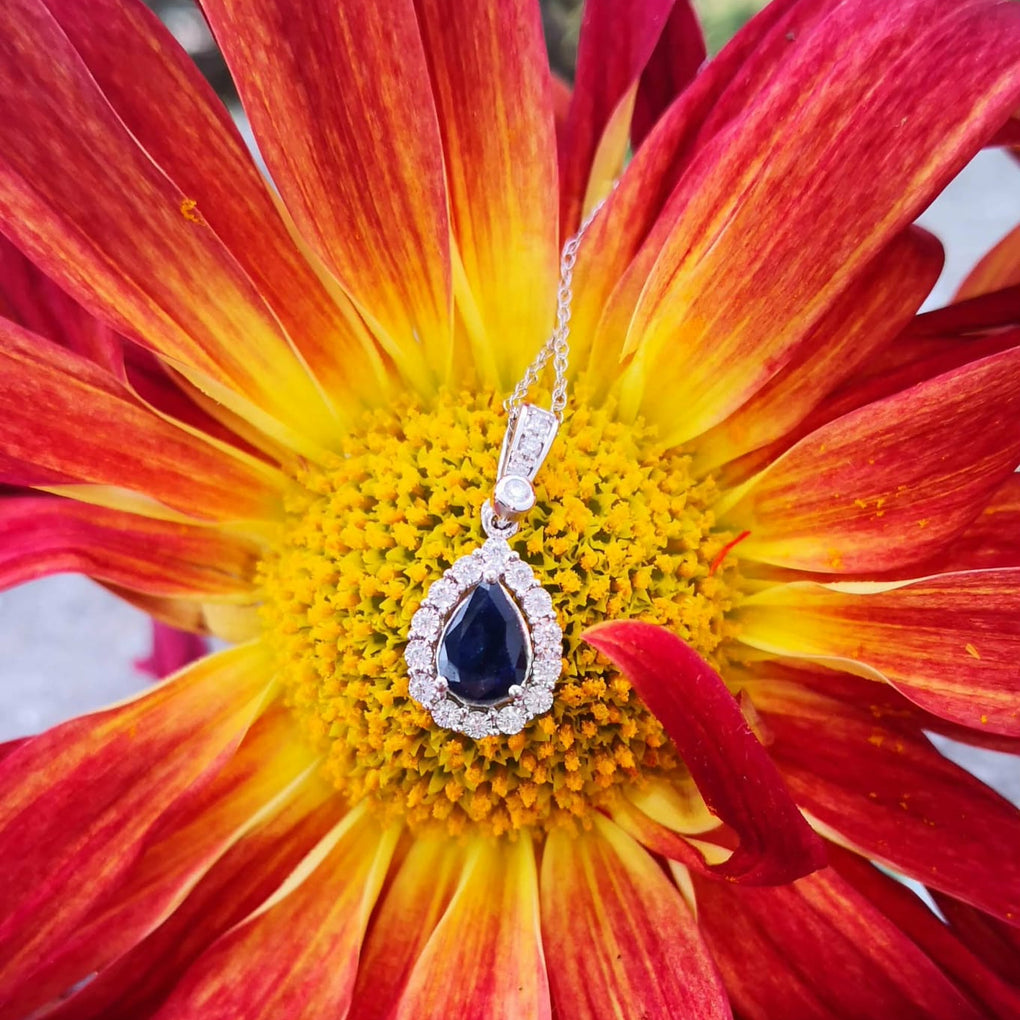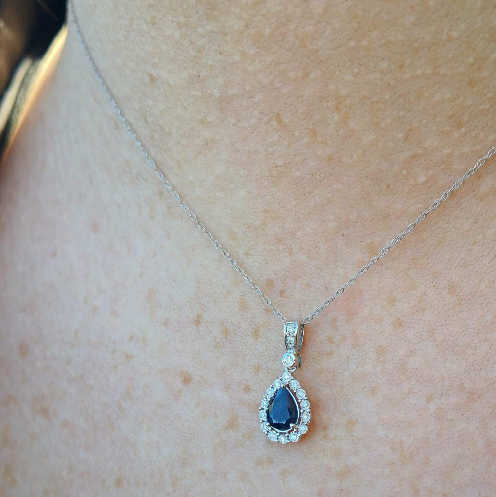 The perfect "pairing" Natural Pear-shaped Sapphire and Diamond Halo Pendant!!