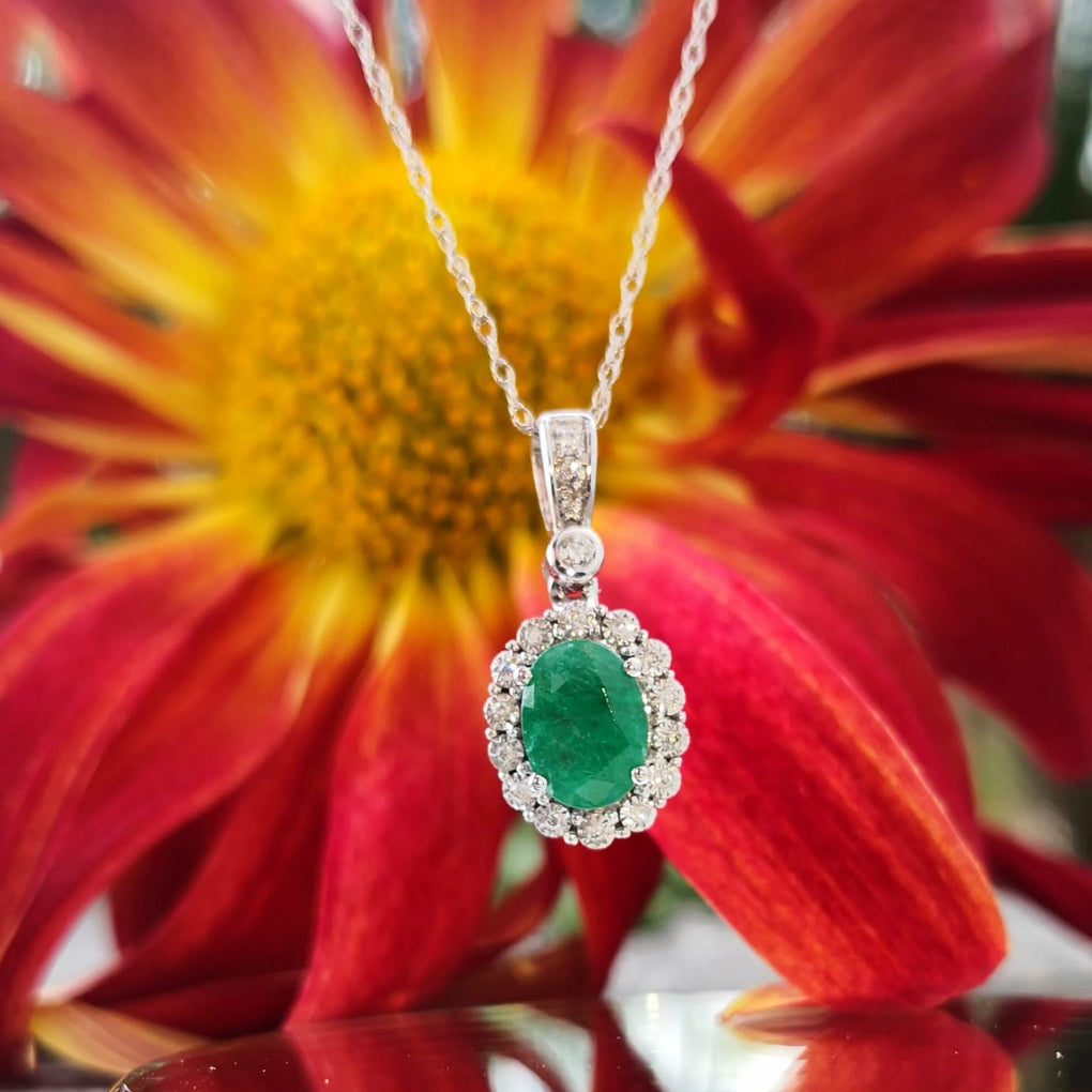 Stunning green Natural Emeralds with a sparkle of diamonds to add just the right touch of elegance.