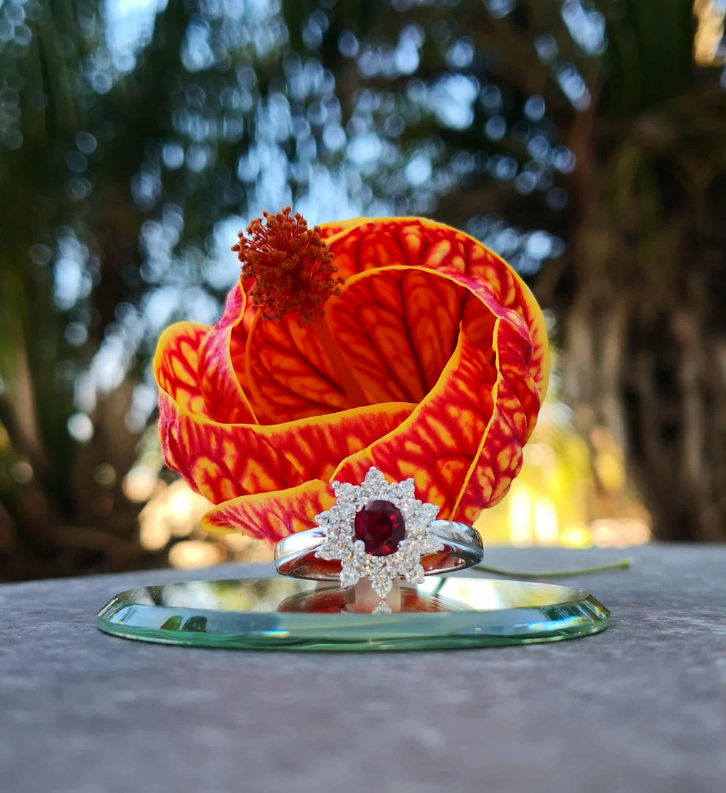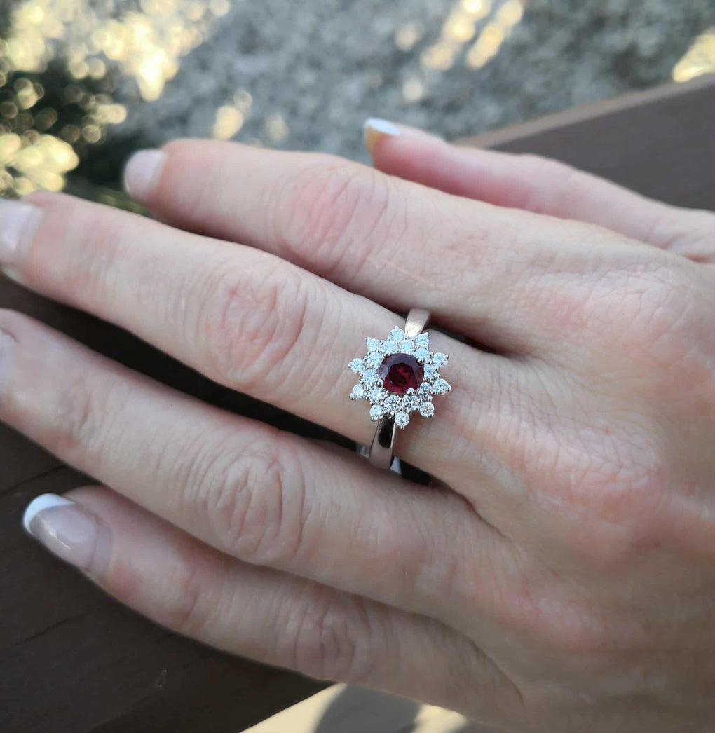 Platinum Ruby and Double Halo diamond Ring Size 7