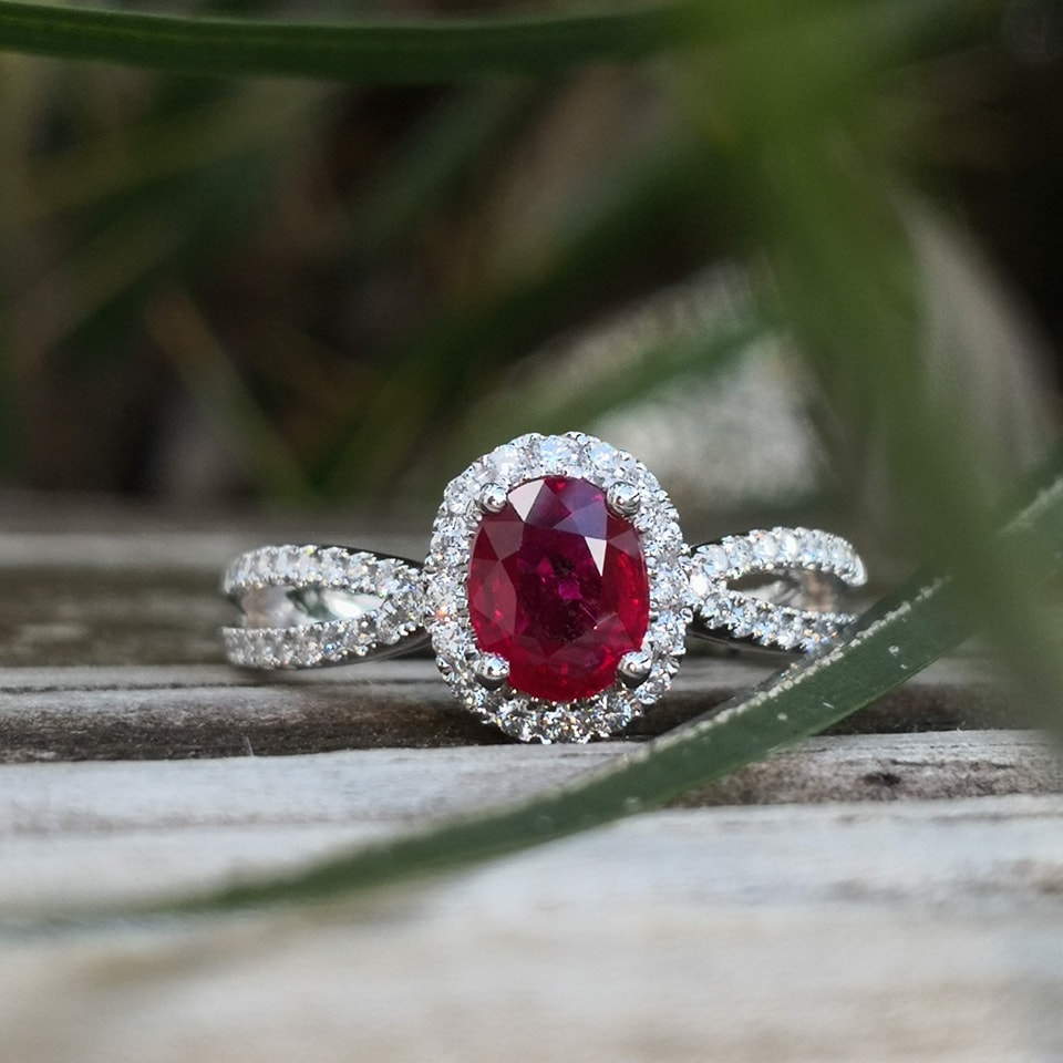 Stunning Deep Red Ruby!!! accented by .25ctw of glittering white Diamonds all set in 18kt White gold!