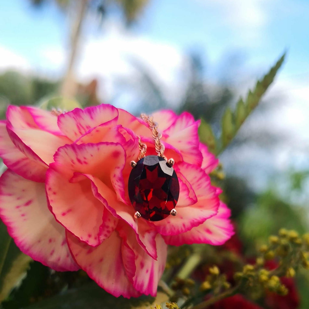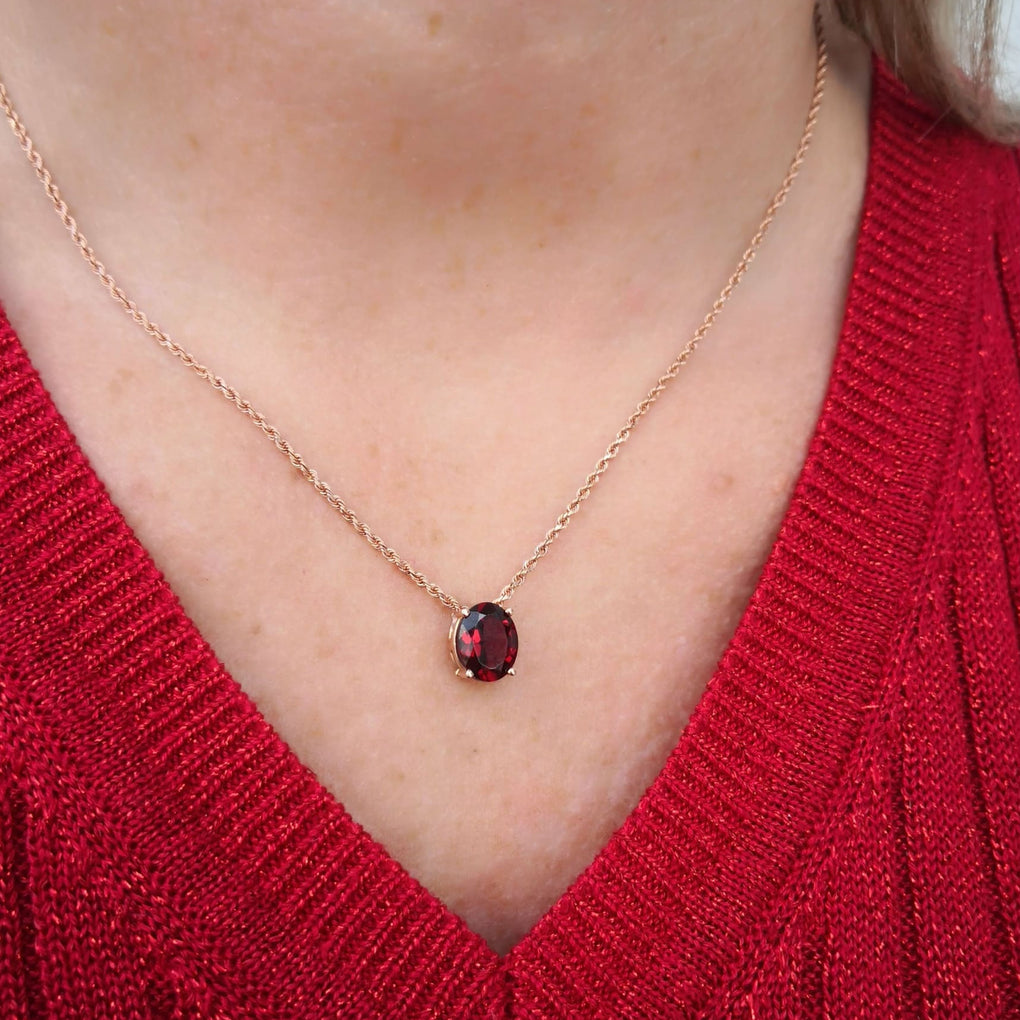 14k Rose Gold Oval Garnet Pendant 18" Rose Gold Chain